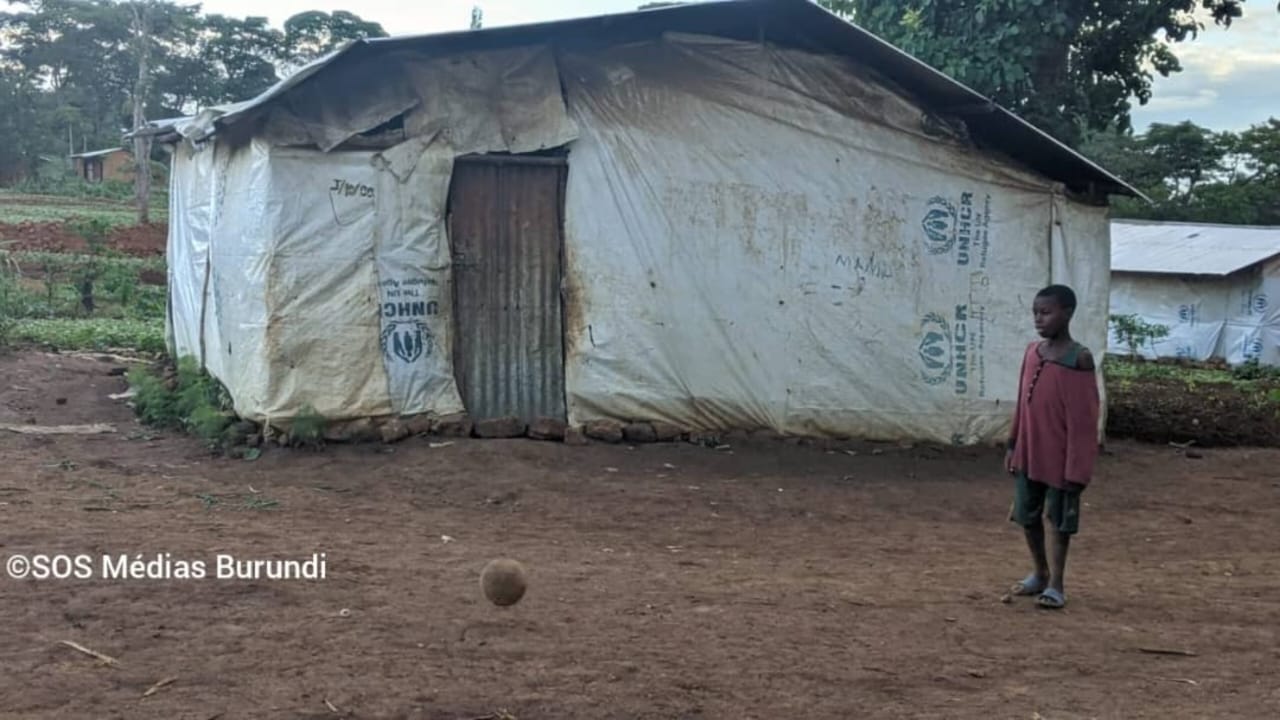 A young boy from a Burundian refugee family stands in front of his parents’ house in Nduta camp, November 2023 (SOS Médias Burundi)